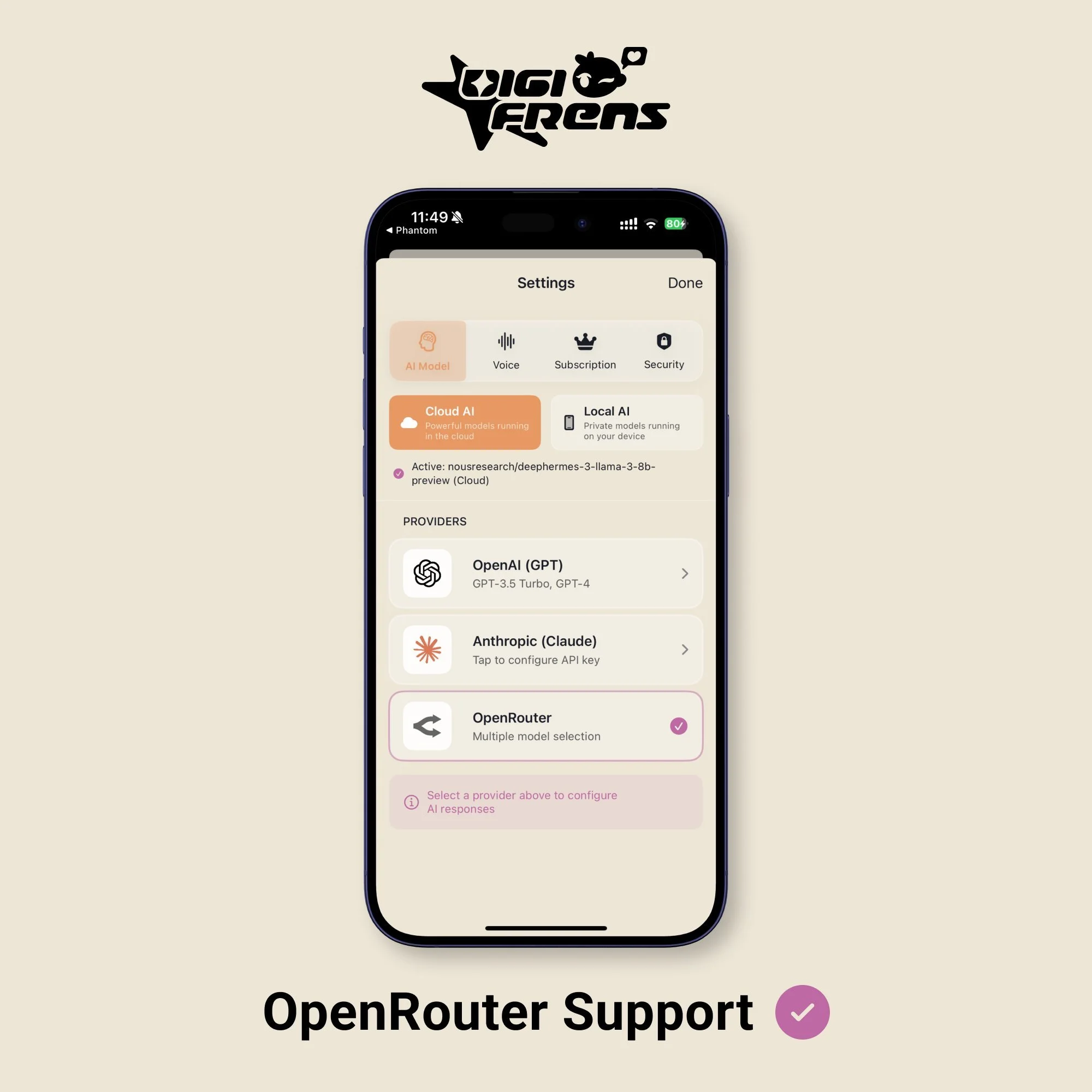 It serves as a non-judgmental AI friend that listens, learns, remembers, and grows with the user. DigiFrens can provide emotional support, thoughtful conversation, and companionship tailored to each user’s personality and needs.